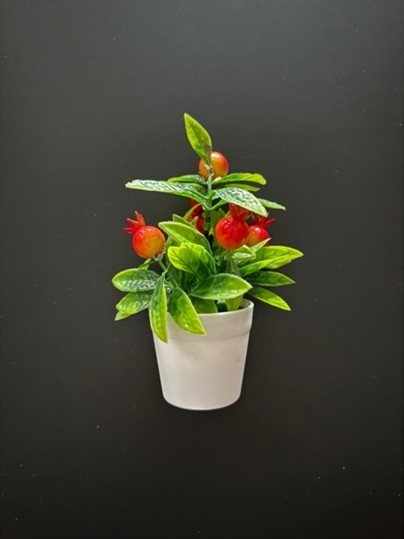 Doniczka – jej optymalna wielkość pozwala na umieszczenie ozdoby w dowolnym miejscu w każdym pomieszczeniu. Sama roślinka jest wykonana z tworzywa sztucznego i elastycznego dzięki czemu jej gałązki możemy formować w dowolny sposób.