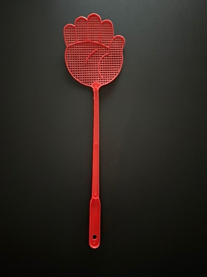 Zestaw 5 łapek na muchy w czerwonym kolorze. Łapka składa się z końcówki do zbijania w kształcie otwartej dłoni o wymiarach 14 centymetrów na 12 centymetrów, dzięki czemu łatwo trafić owada oraz z wytrzymałej rączki o długości 29 centymetrów. Długość rączki sprawia, że możemy trafić insekty oddalona od nas w znaczący sposób lub latające w ciężko dostępnych miejscach. Wytrzymały i elastyczny materiał z jakiego wykonany jest produkt uniemożliwia jego złamanie. Otwór na końcu rączki sprawia, że łapki można wieszać na haku.